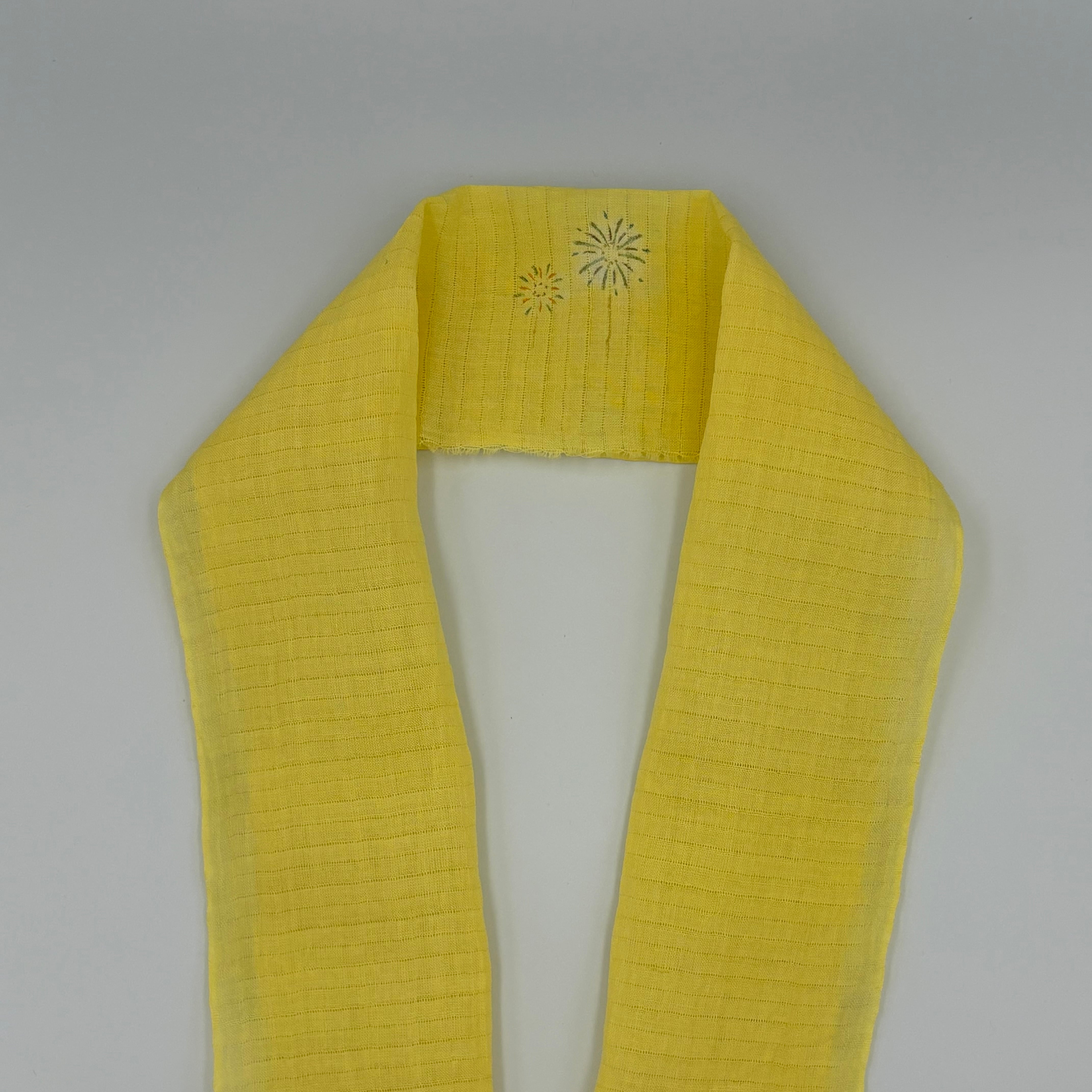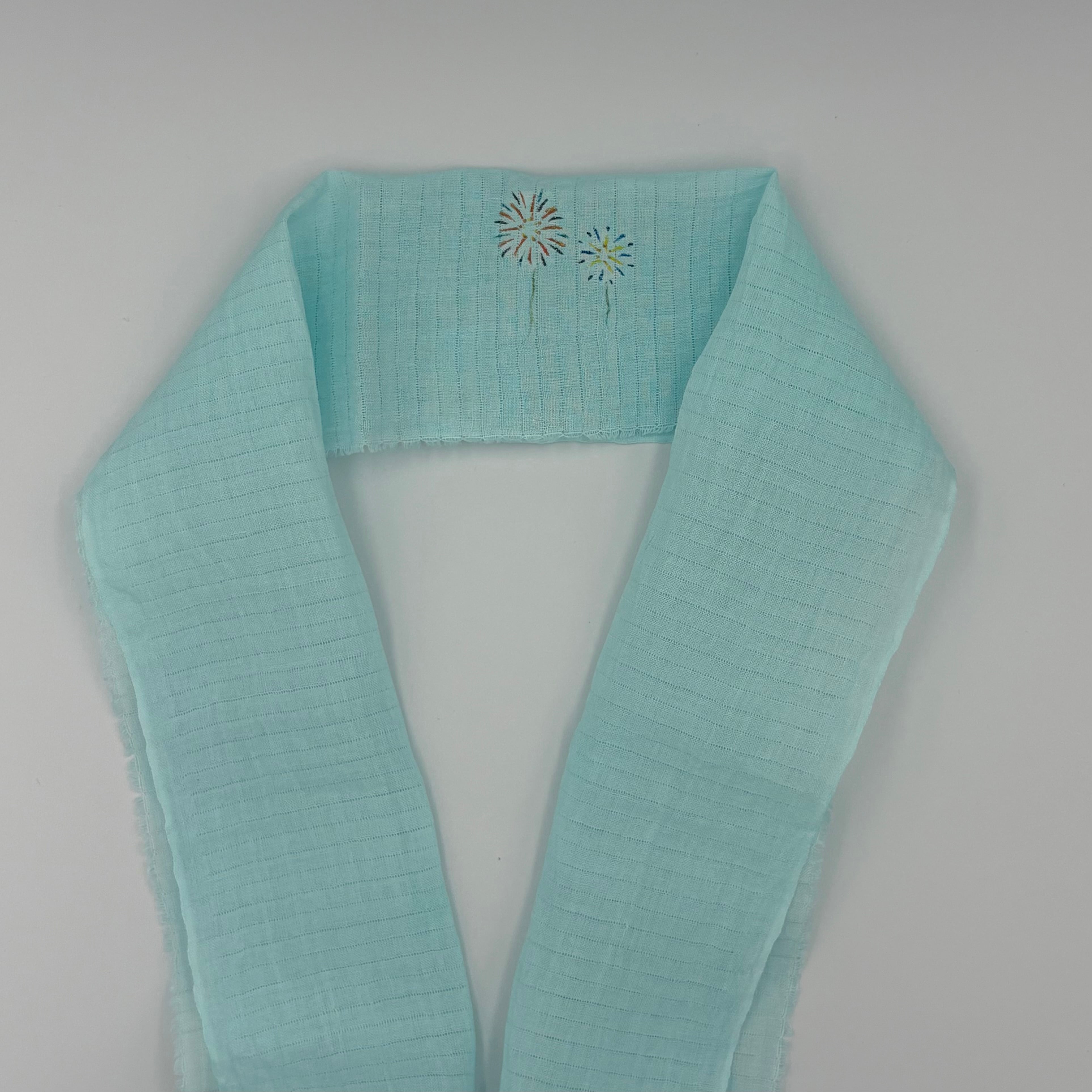「夏用」麻絽半衿は、涼しげな麻素材を使用した夏の定番アイテムです。花火柄の美しいデザインが特徴で、さりげなく和の魅力を引き立ててくれます。