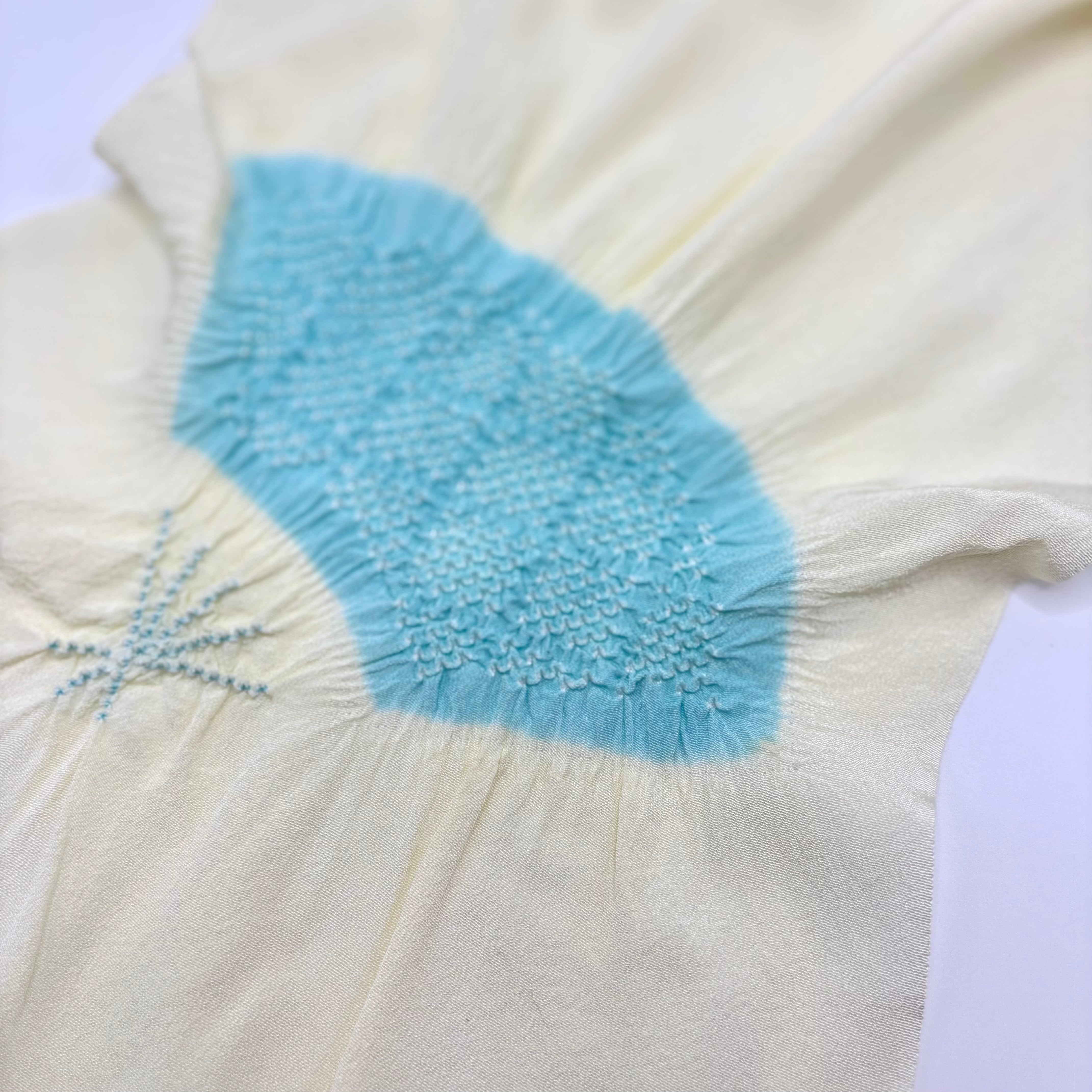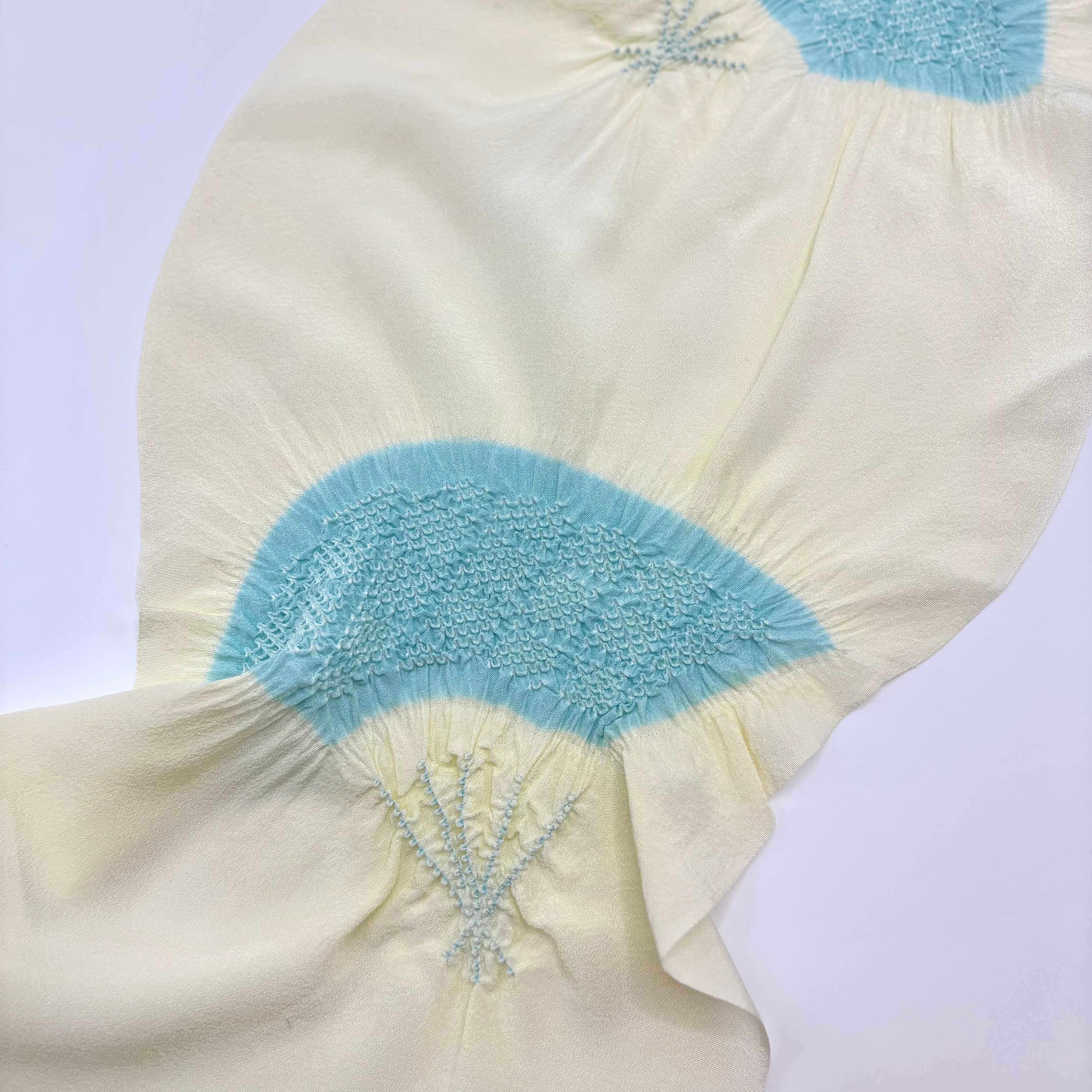 末広がりの形から吉祥文様として親しまれてきた扇面柄を四つ、繊細な絞りで表現しました。