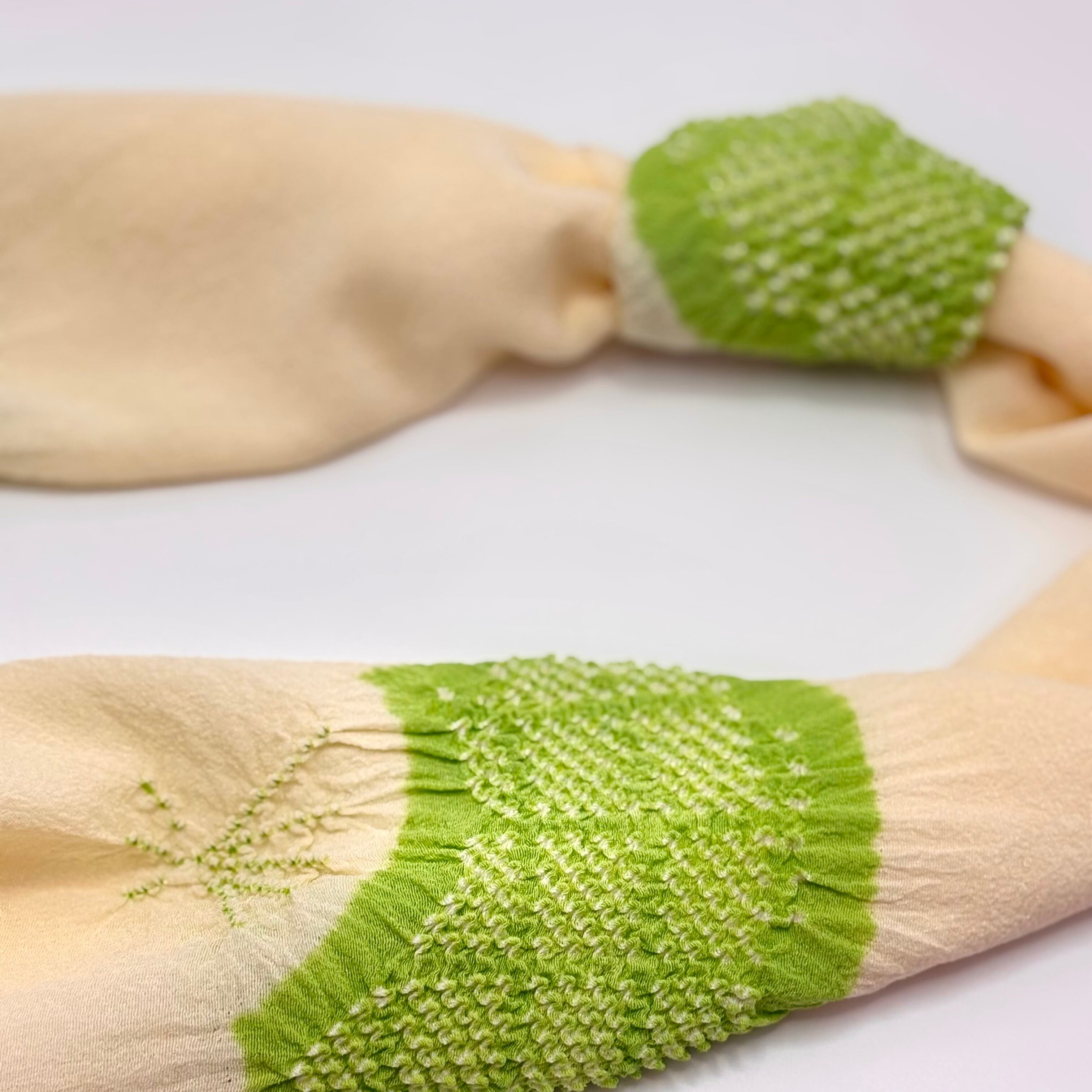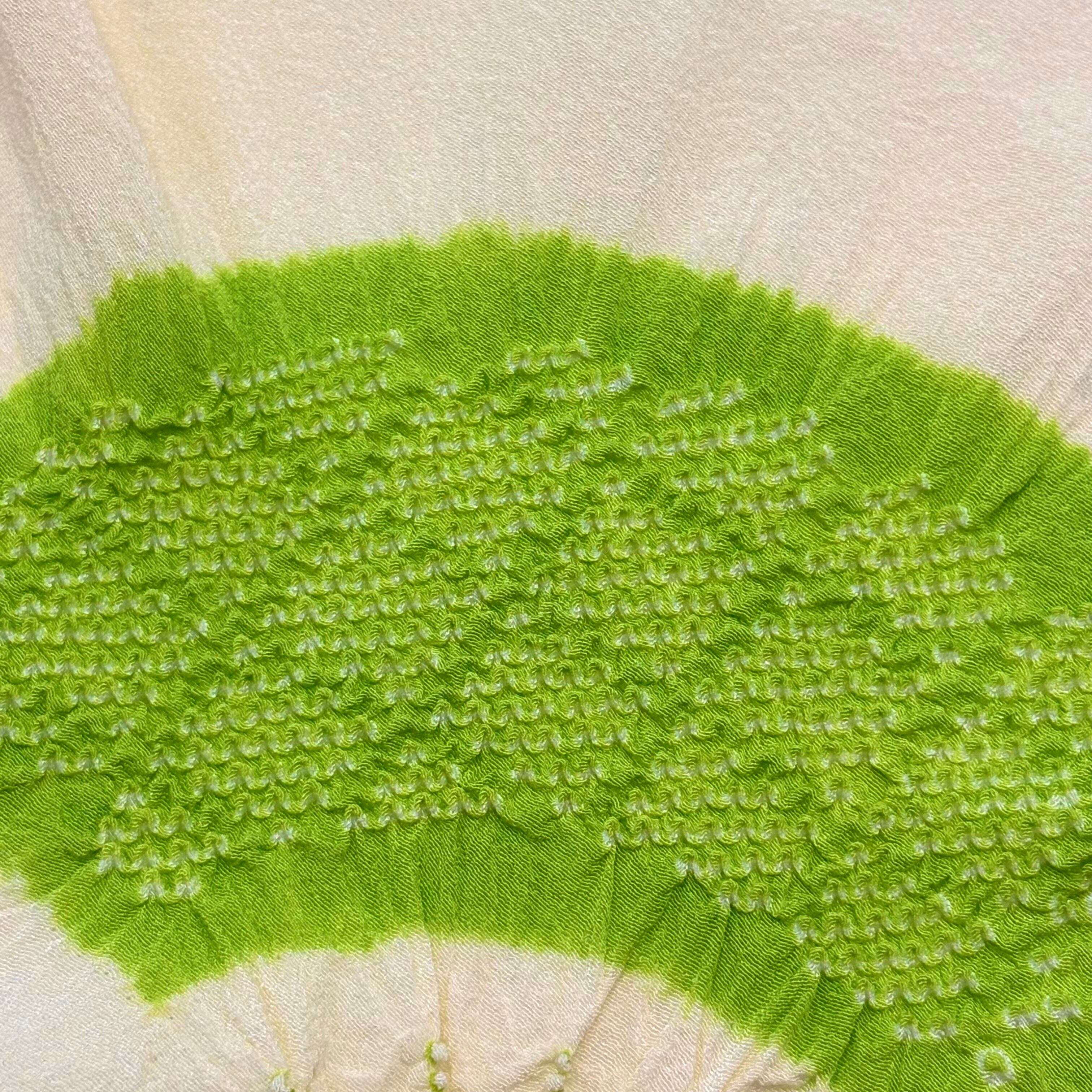 絞りならではの立体感が美しい、扇面柄の帯揚げです。