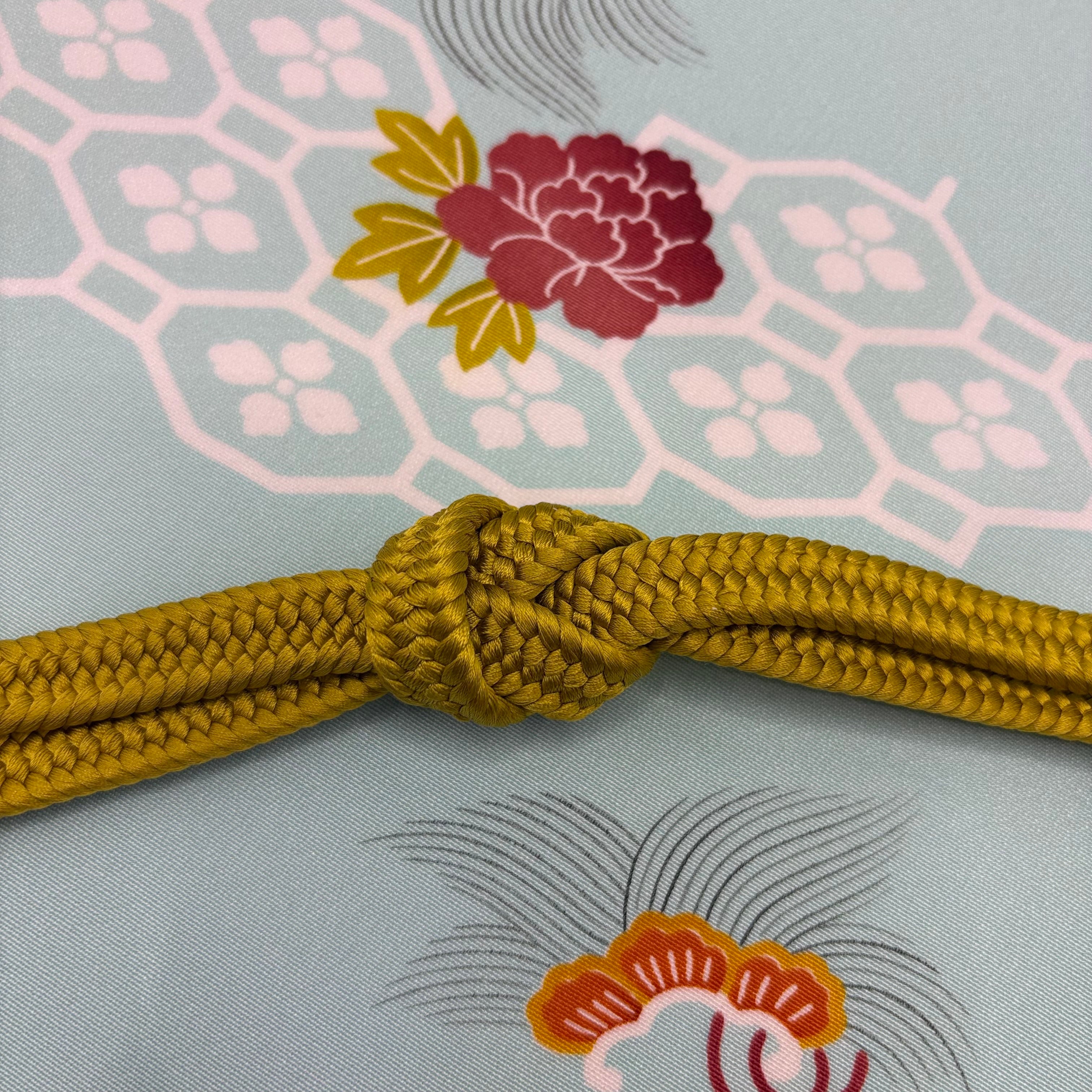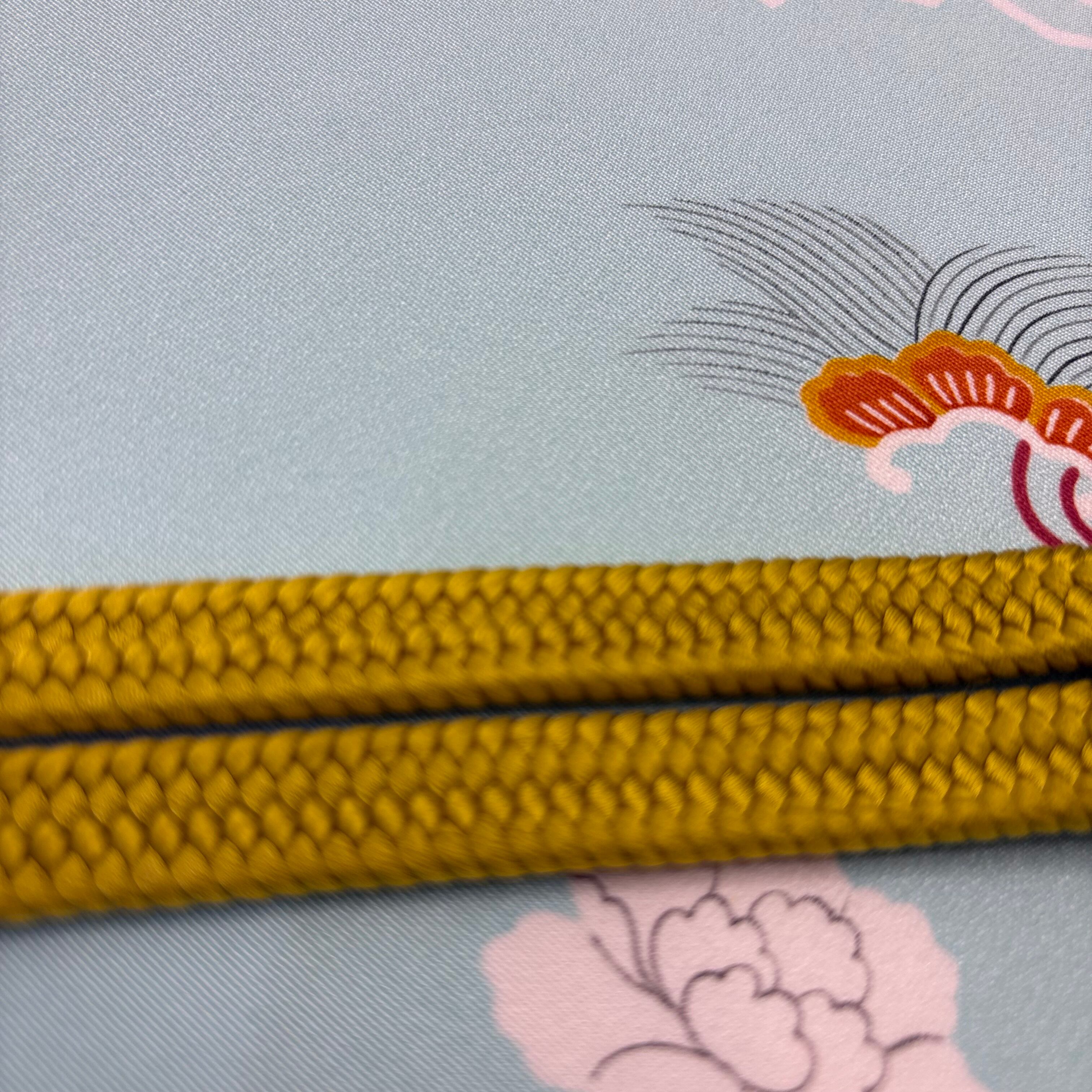 和装を引き立てるアクセントとしてぴったりな志ま亀の組紐。通常より多くの糸を使い、高密度に厚く組まれています。厚みと重厚感があり、しっかりと帯を固定し緩みにくいのが特徴です。独自の色合いと繊細な技術で組まれた帯締めは、着物姿を一層引き立てます。