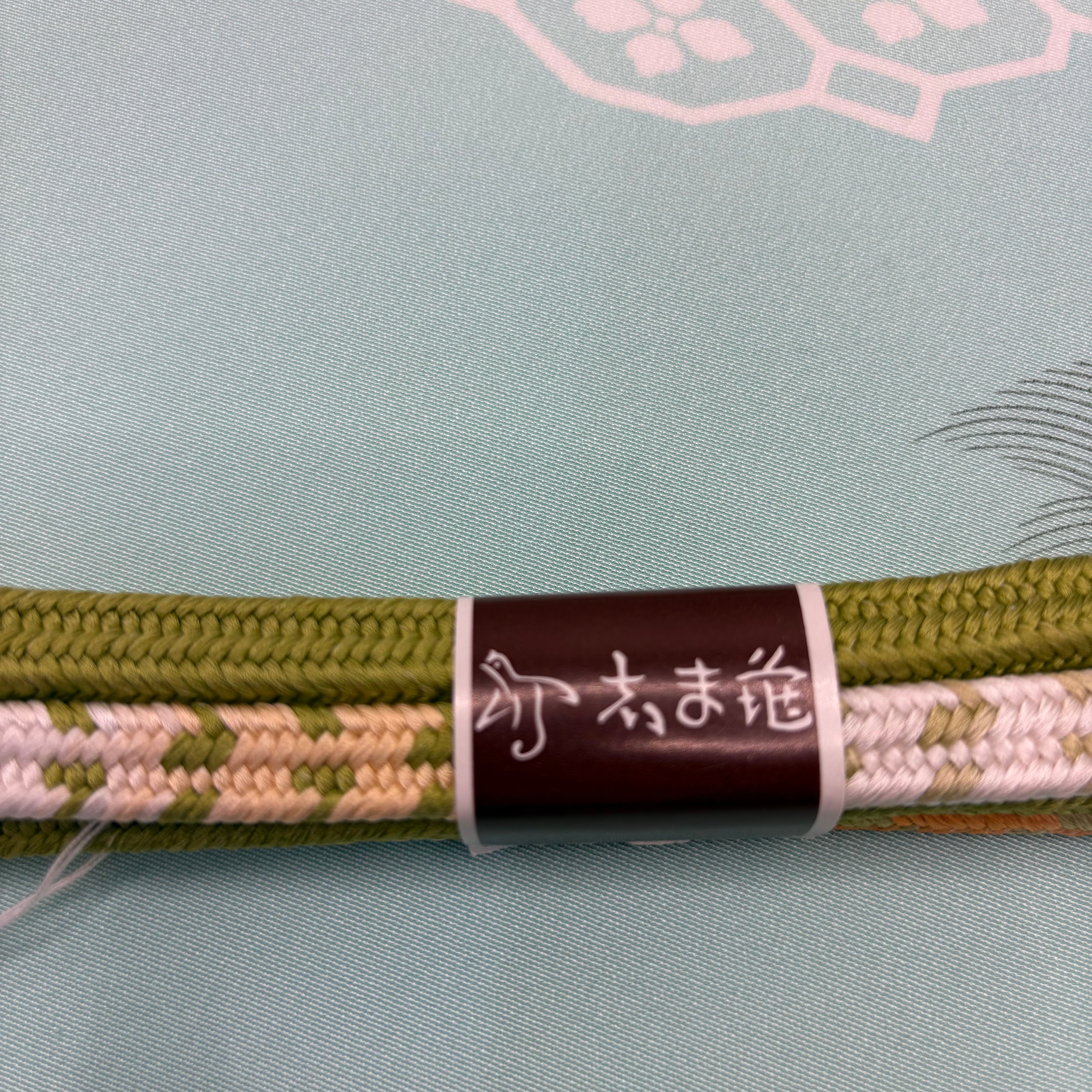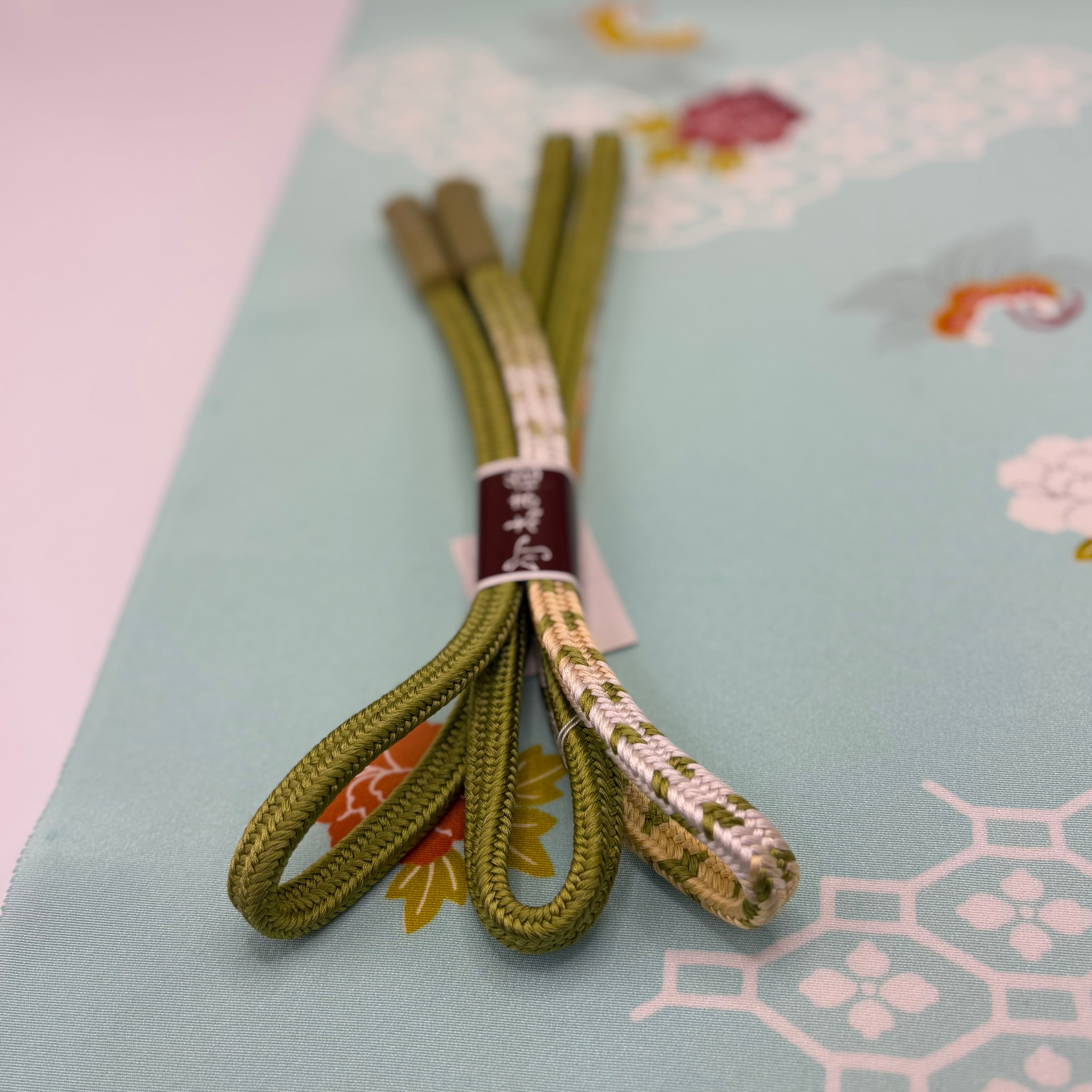 和装を引き立てるアクセントとしてぴったりな志ま亀の組紐。独自の色合いと繊細な技術で組まれた帯締めは、着物姿を一層引き立てます。抹茶のぼかし、朱のぼかしが美しく、間に入る白が抜け感を作り洗練された印象です。