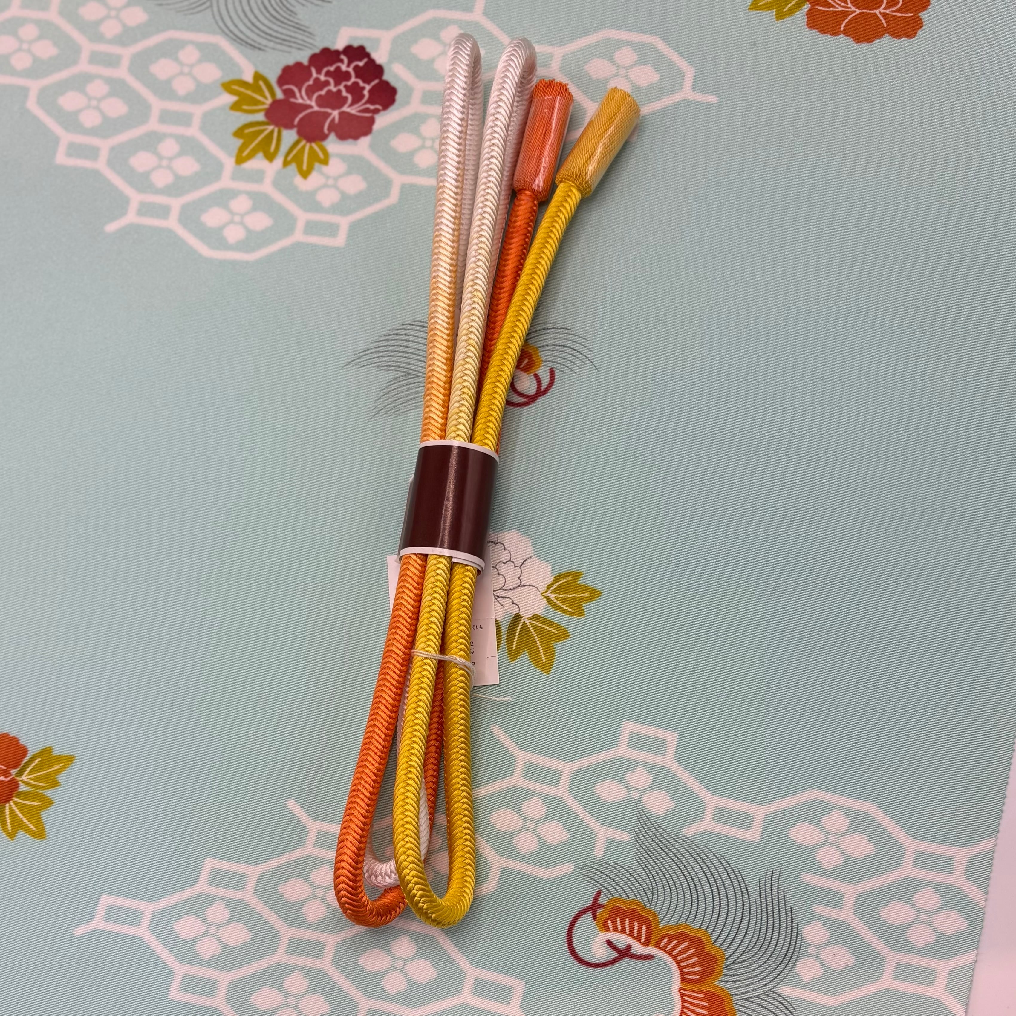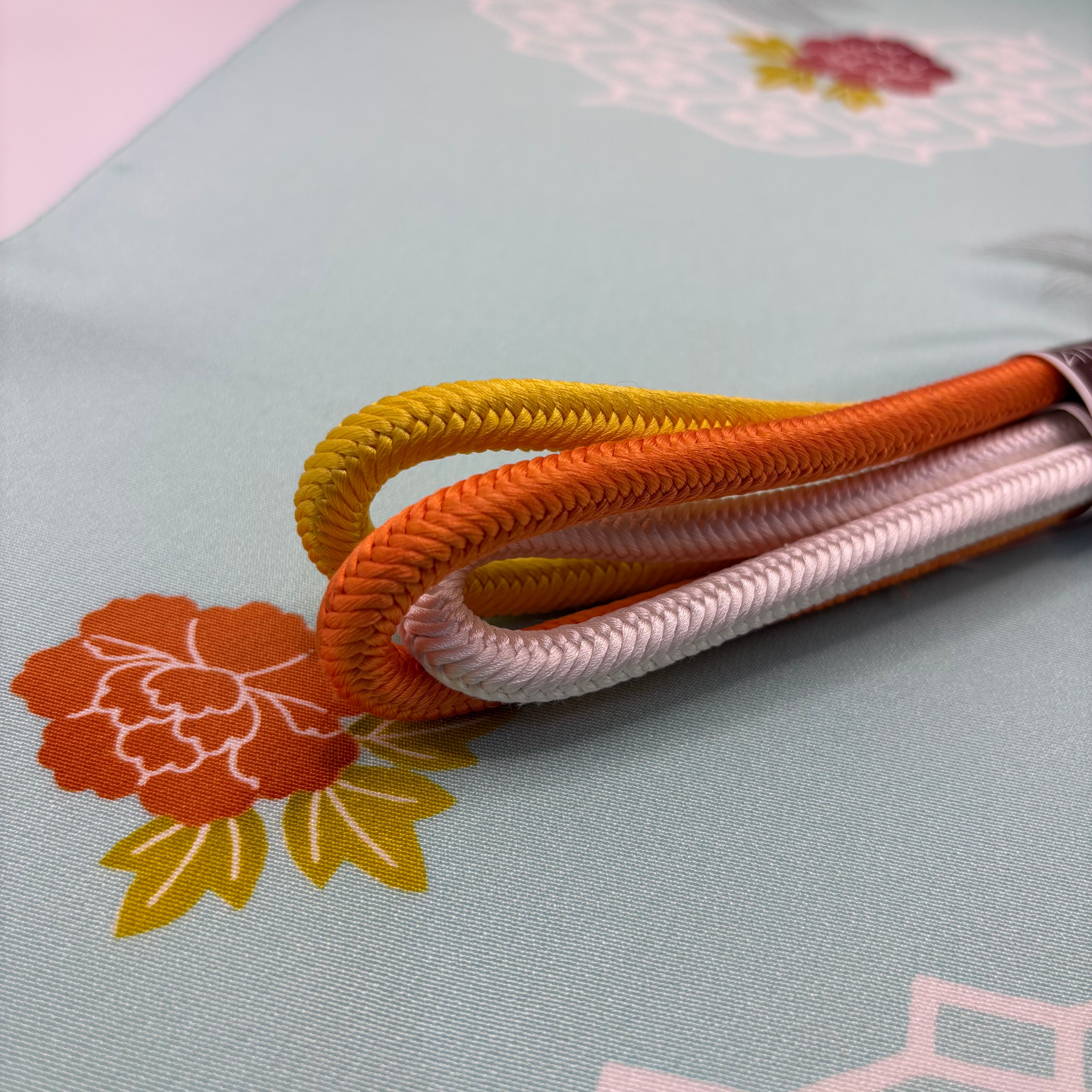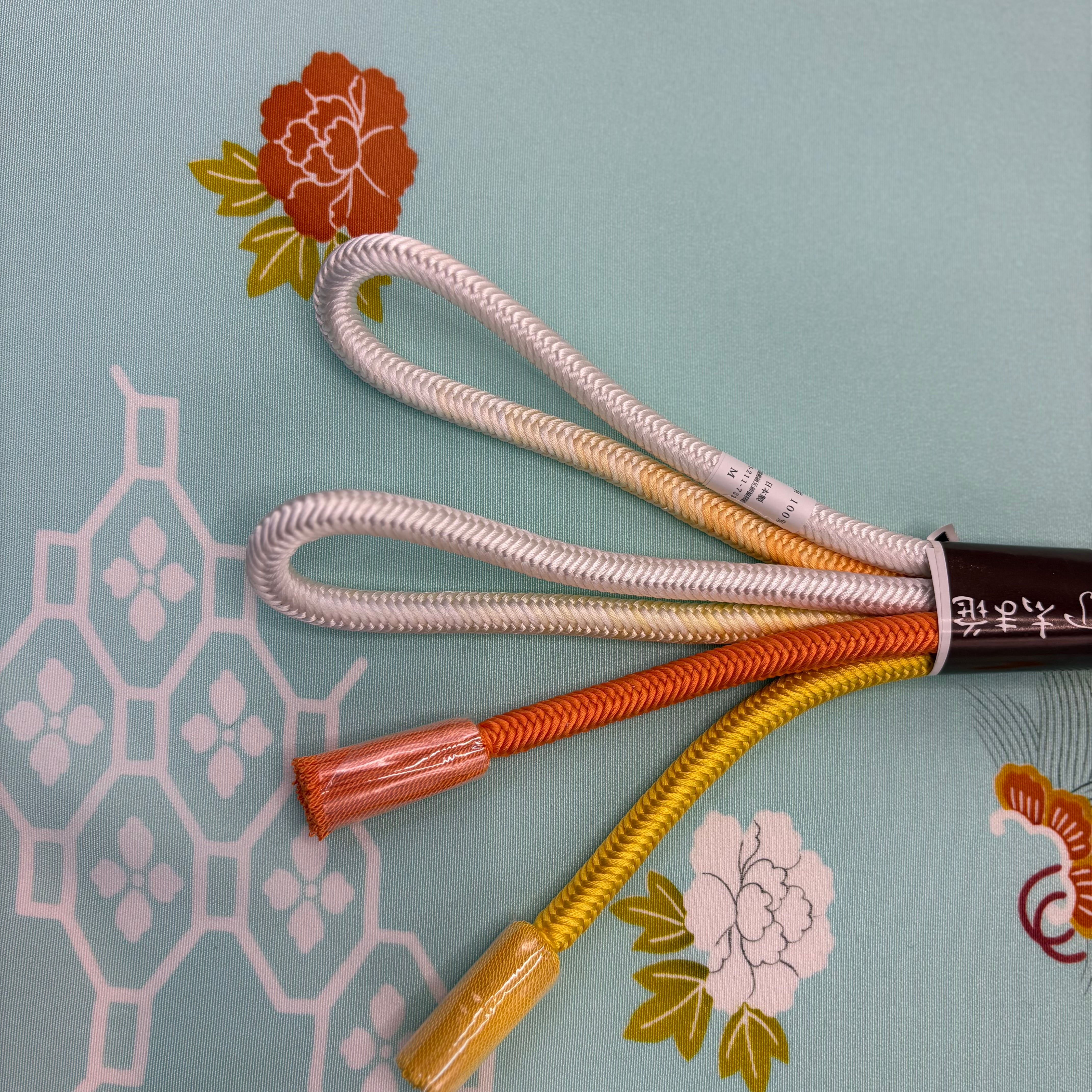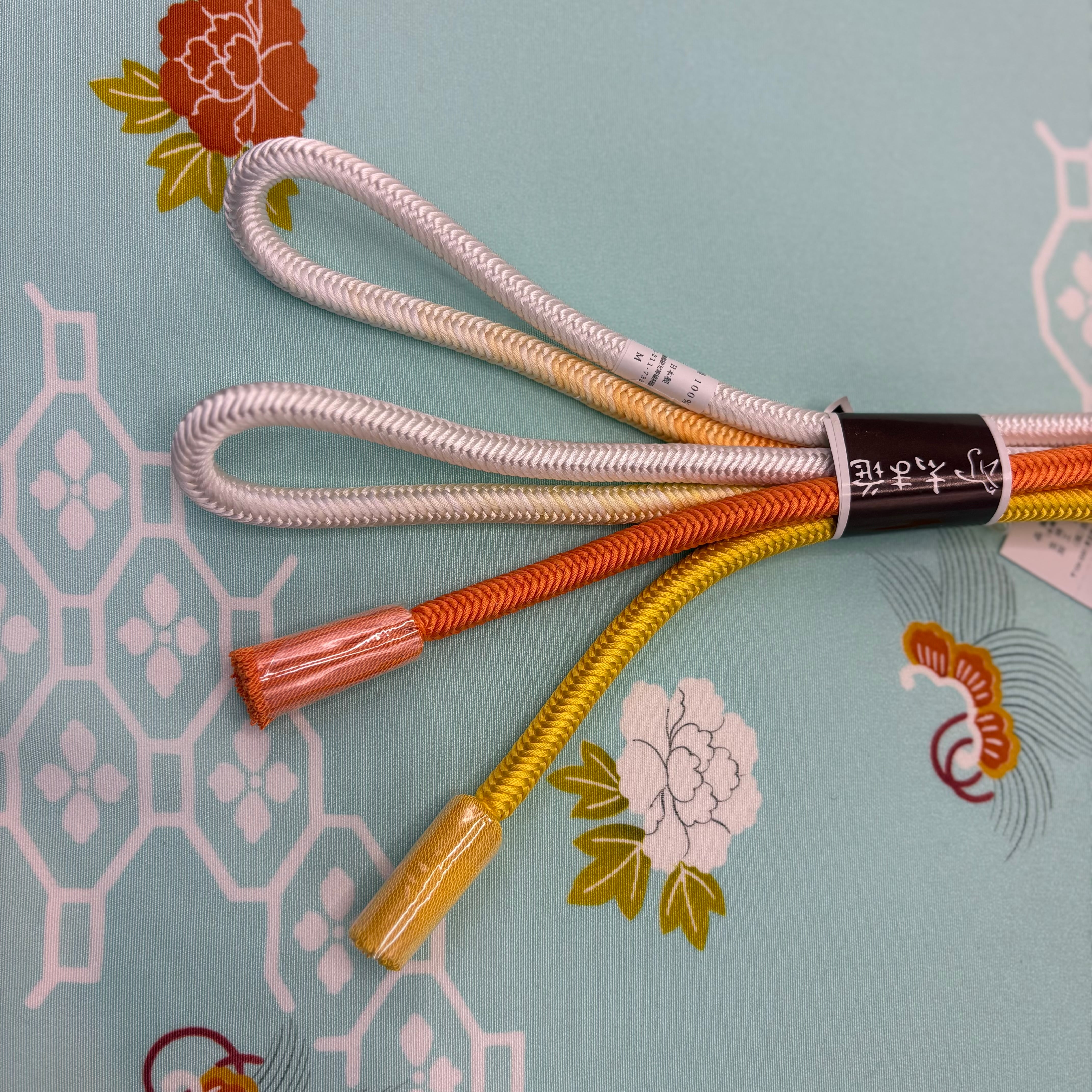 和装を引き立てるアクセントとしてぴったりな志ま亀の組紐。独自の色合いと繊細な技術で組まれた帯締めは、着物姿を一層引き立てます。朱と黄のぼかしが大変美しく、存在感があり華やかな印象です。帯の効き色としてお使いください。