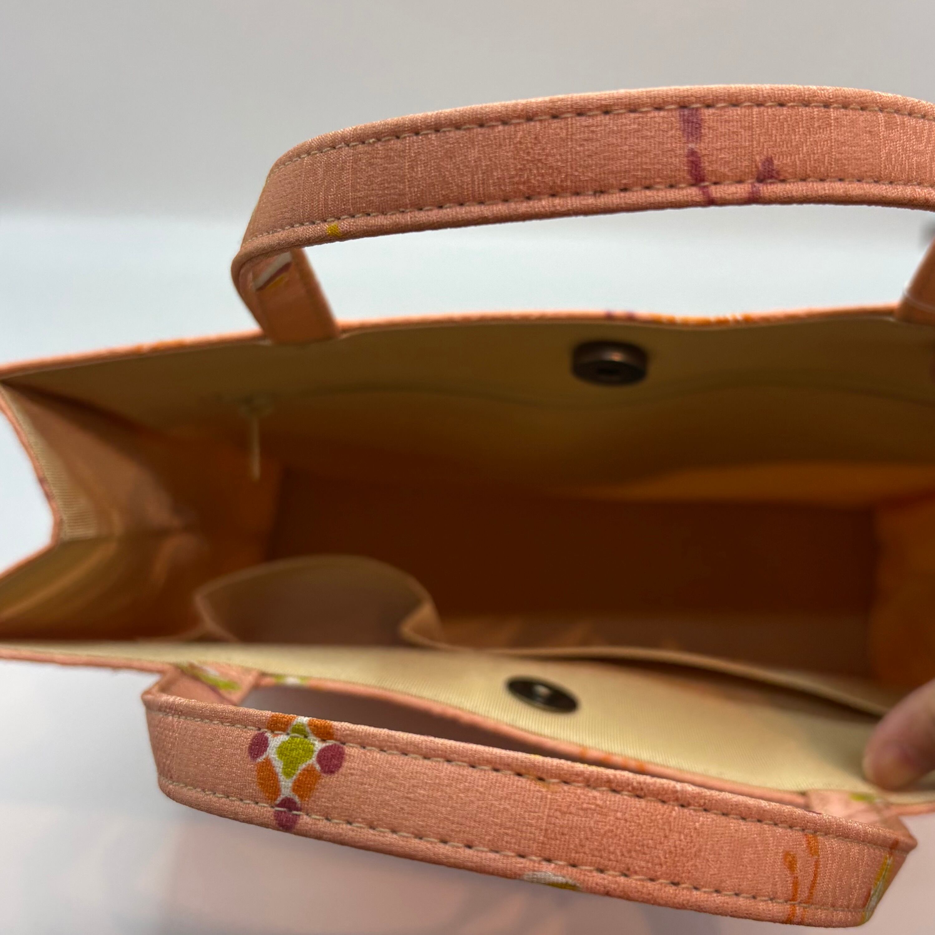 美しい小紋生地を使用したトートバッグは、和装から洋装まで幅広く活躍します。